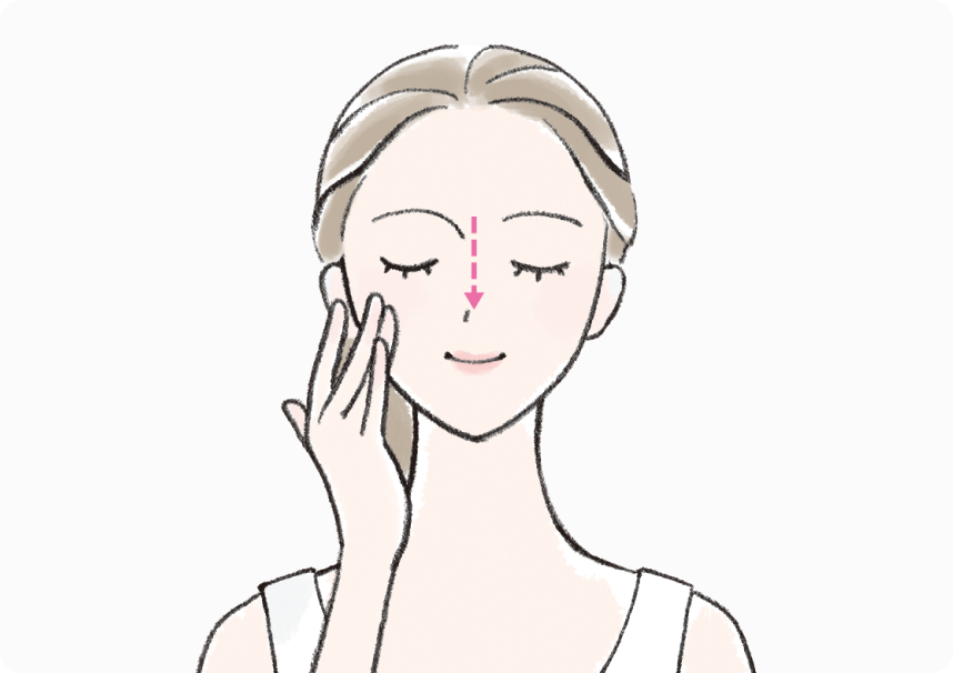 指の腹を使って、顔の外側がなるべく薄付きになるように内側から外側に向かってのばします。