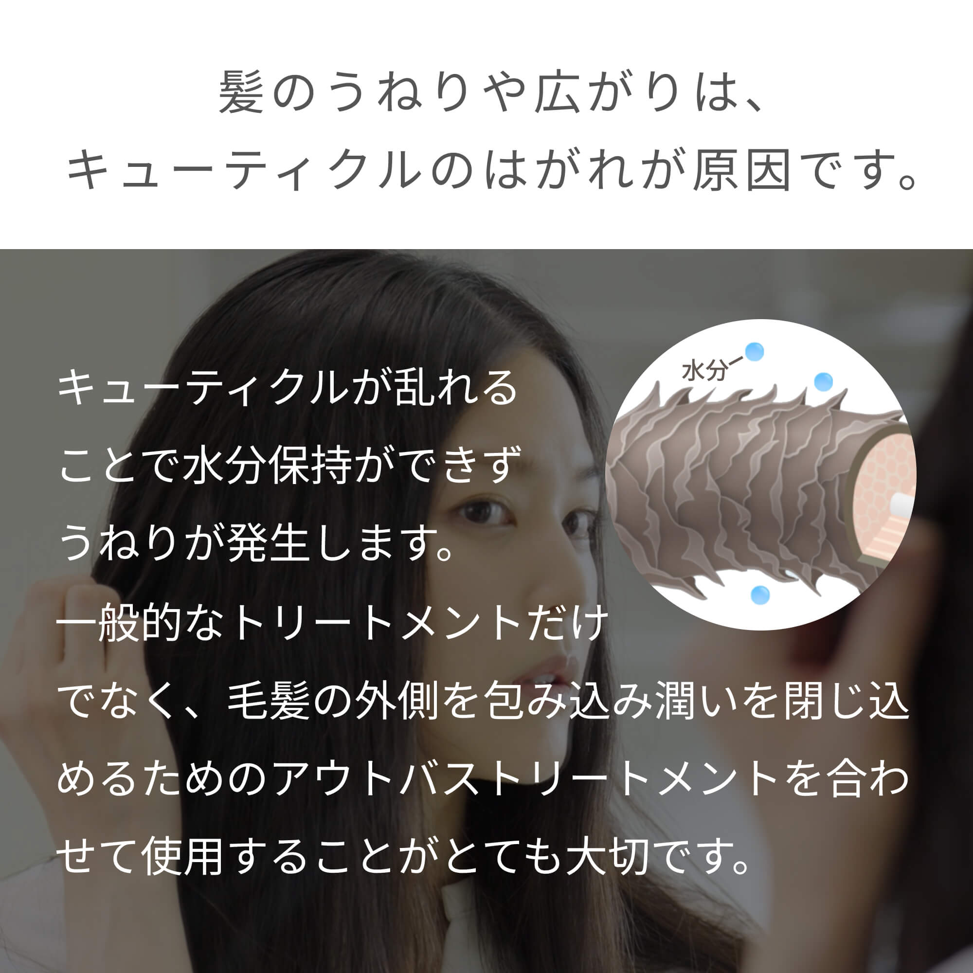 髪のうねりやパサつきの原因は「キューティクルのはがれ」だけではありません。