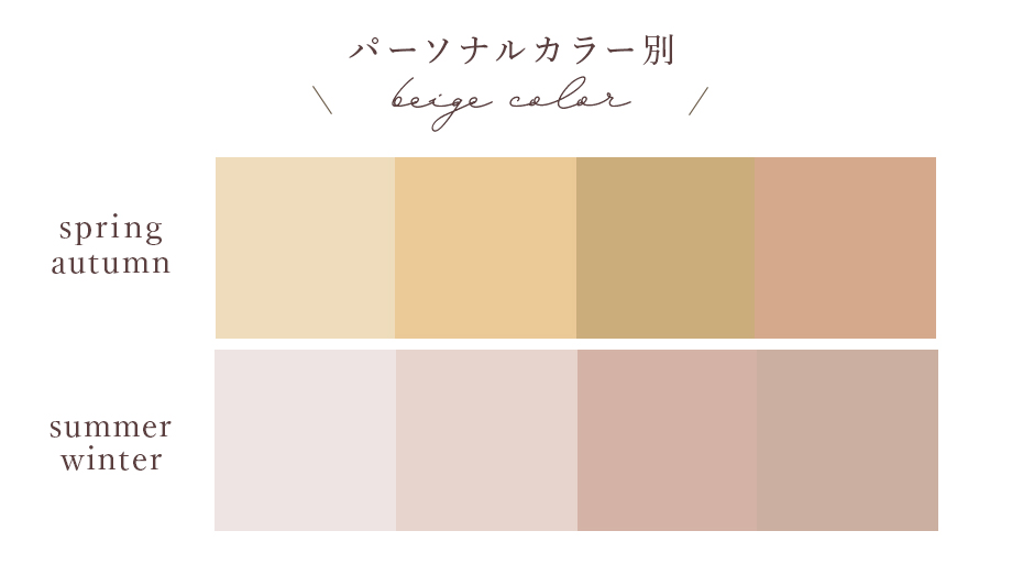 じつは、パーソナルカラーによって「似合うベージュ」はちょっとずつ違うんです。