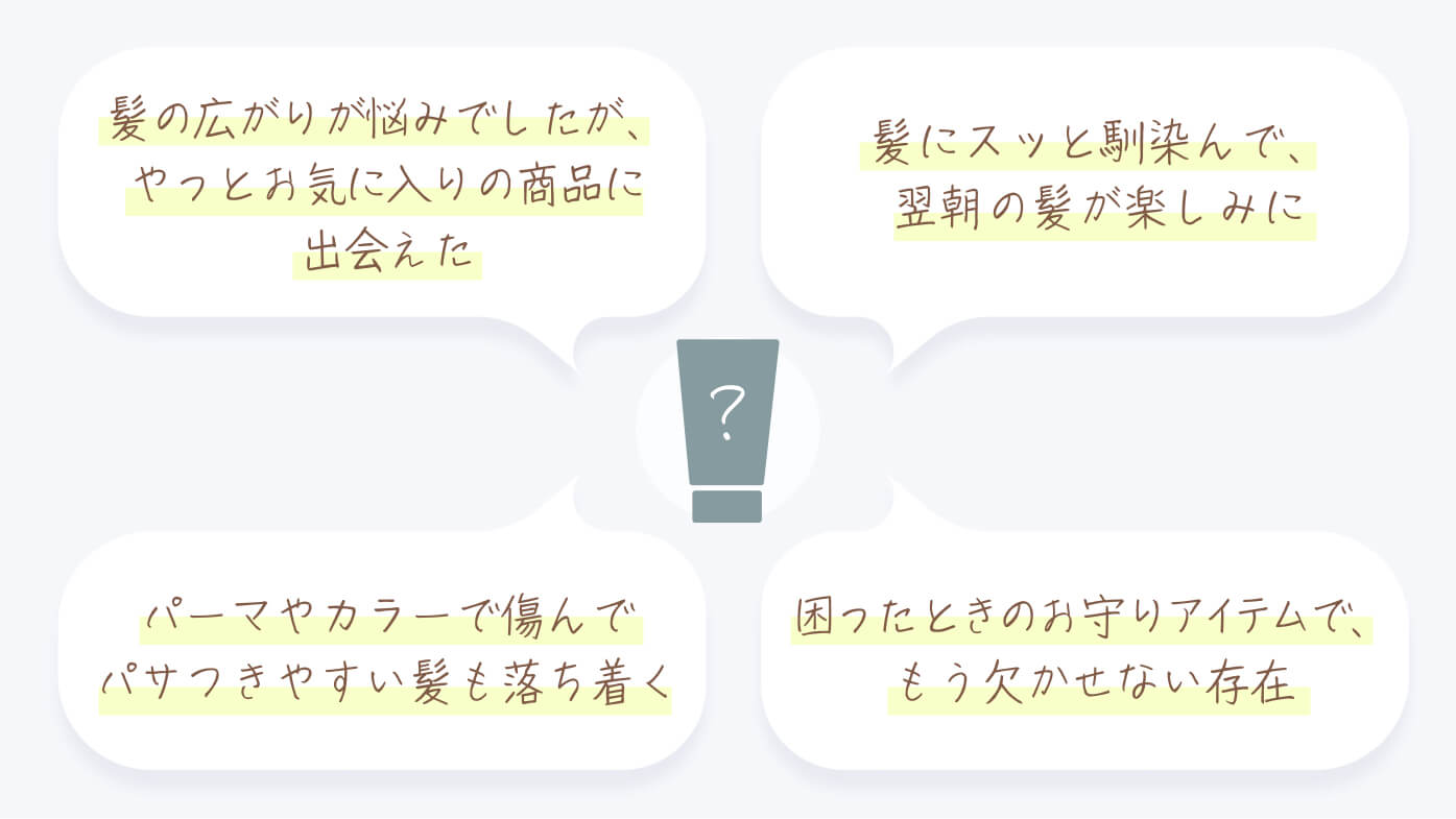潤いや美髪成分※1がとどまり、まとまりのある仕上がりが長く続きやすいのが特長。そのため、毎日使わずとも満足される方が多く、週1回などのスペシャルケアとしての使用がおすすめです。