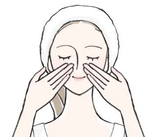 指の腹を使って、円を描くようにやさしくなじませます。指先が重くなったら、メイク汚れや皮脂汚れがオイルに溶け込んだサインです。