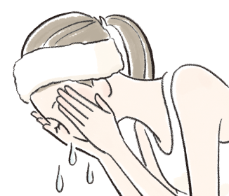 すすぐ前に少量の水を加えオイルが白く変化(乳化)するまでなじませると、濃いメイクが落ちやすくなります。