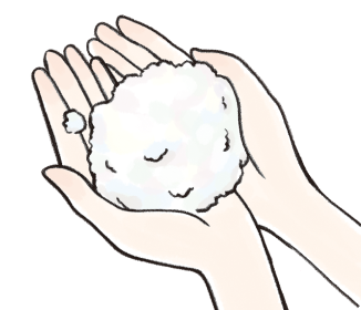 手のひらに適量(2cm程度)を出し、ぬるま湯を少量ずつ加えながら、しっかり泡立てます。