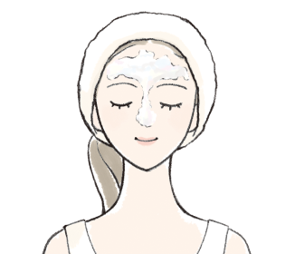 顔全体に泡を広げ、泡の弾力をクッションにして、泡を転がすように指の腹でクルクルと洗います。