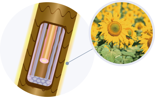 ※1 当社実験結果 ※2 ヒマワリ種子油、(アクリレーツ/メタクリル酸ポリトリメチルシロキシ)コポリマー、イソステアロイル加水分解コラーゲン、イソステアロイル加水分解シルク