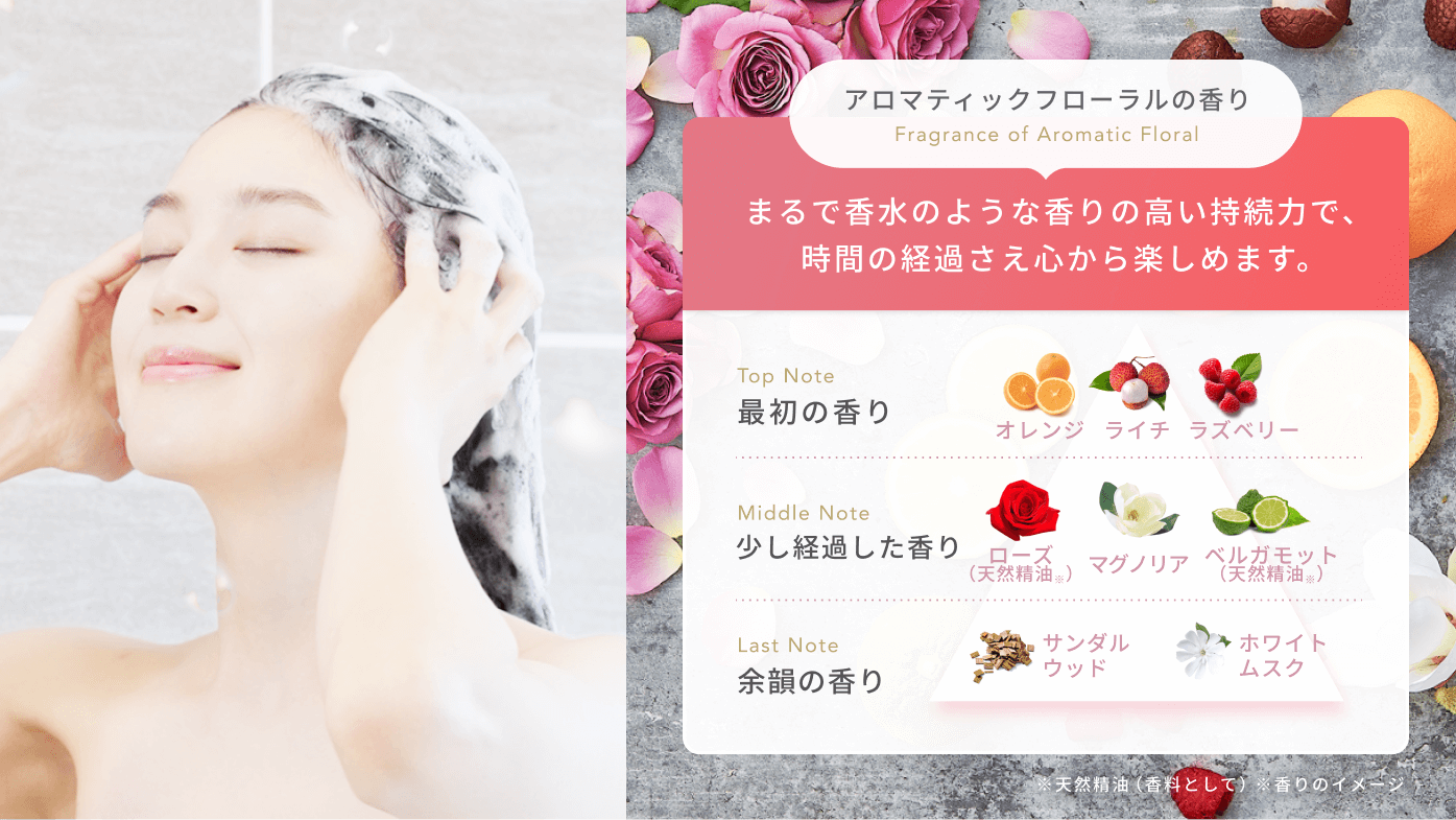 [弱酸性] [アミノ酸系洗浄成分] [アロマティックフローラルの香り] -