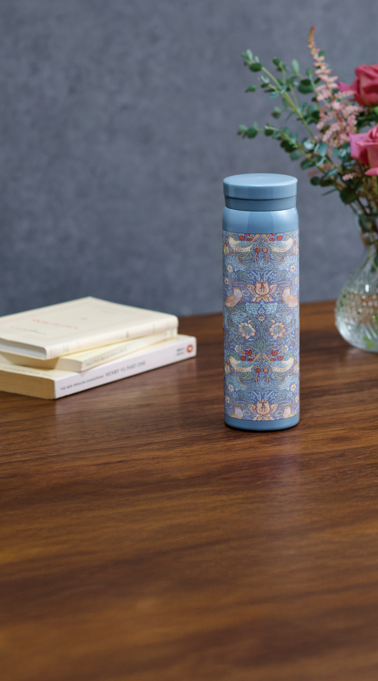 モダンデザインの父と呼ばれる彼が生み出した美しいデザインは、今もなお世界中で愛され続けています。今回は、そんなモリスの代表作《いちご泥棒》をあしらったステンレスボトルを数量限定でご用意。さらに《セランダイン》《らっぱ水仙》を採用した限定デザインの専用空ボトルも登場します。