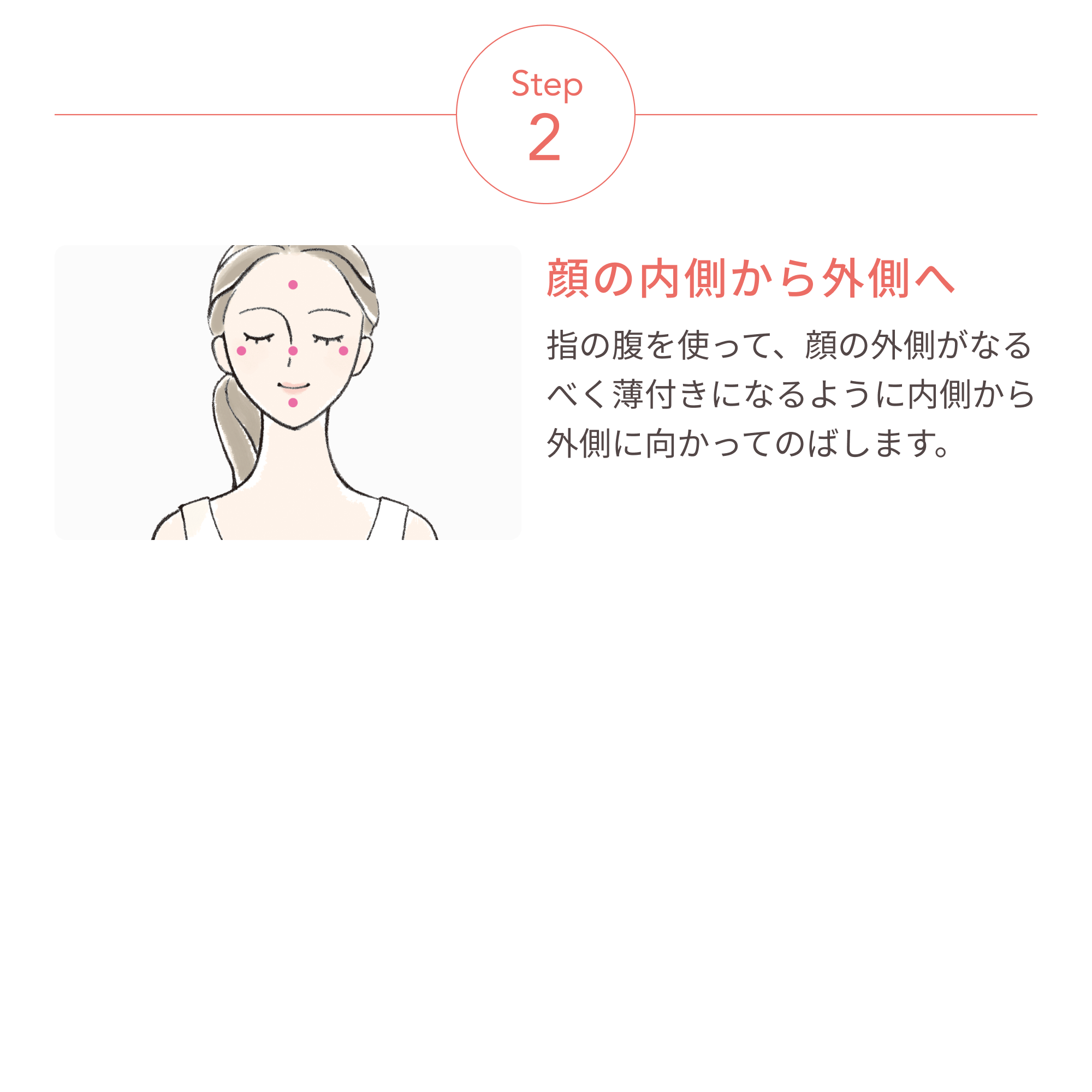 - 指の腹を使ってムラなくのばしてください。