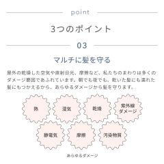 屋外の乾燥した空気や直射日光、摩擦や熱などの多くのダメージ要因から髪を守ります。