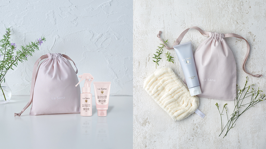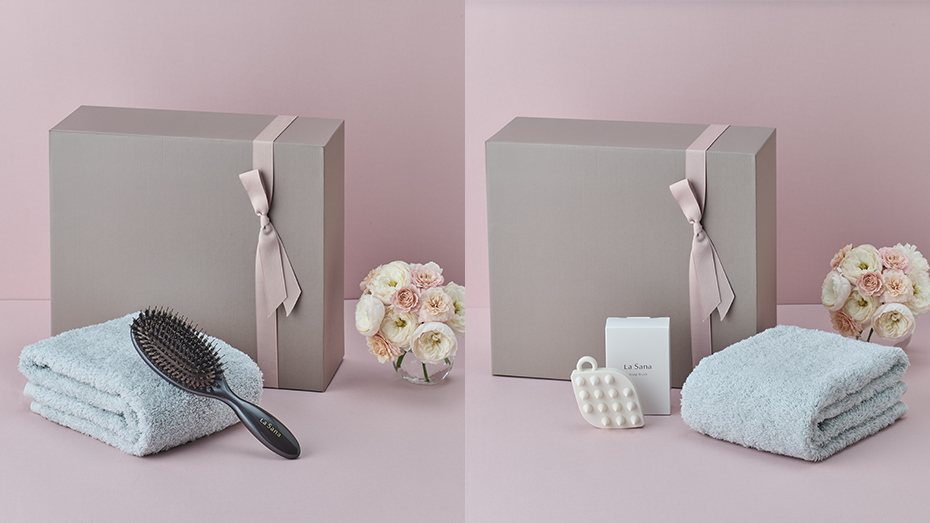 ラサーナはブランドとして大切にしている《健やかな美》をギフトを受け取る相手の方にもお届けしたいと思っているので、美容に特化したタオルとヘアブラシのセットをご用意しました。