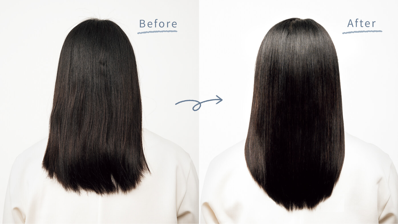 キューティクルを整えて髪の外側からツヤを与えるだけでなく、髪内部のダメージにまでアプローチ。外と内の両方から補修することで、まばゆいほどのツヤを引き出します。