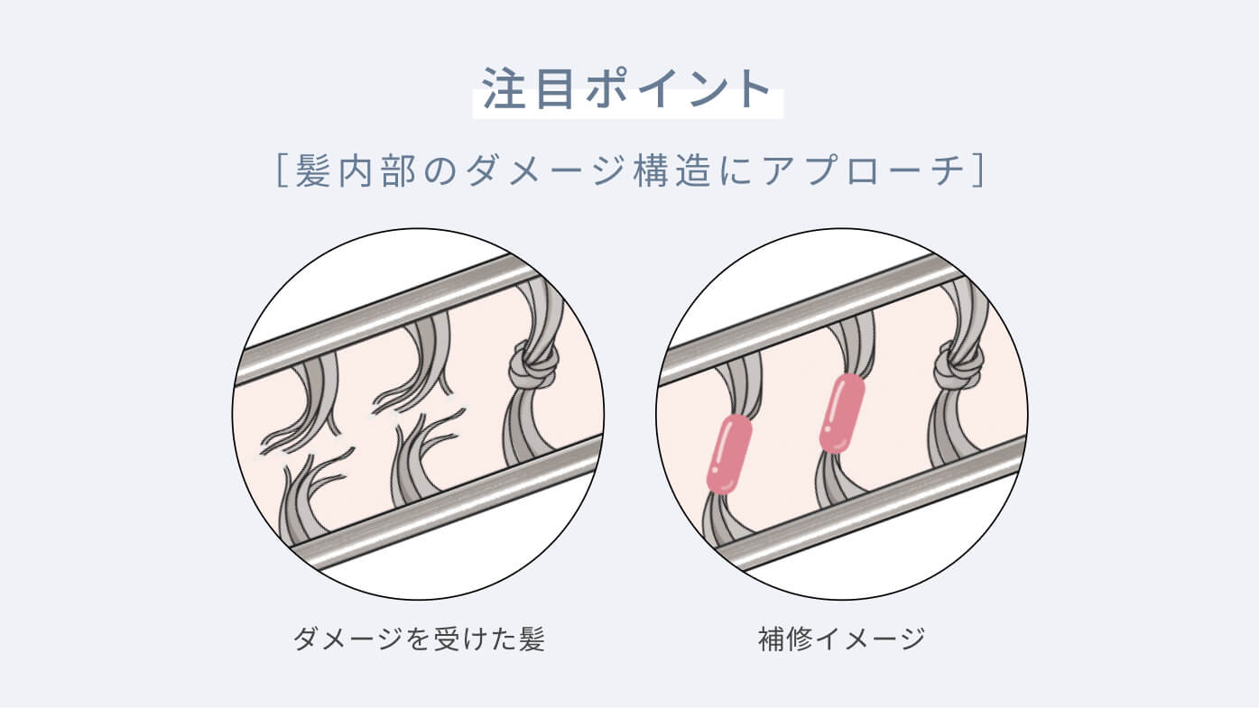 そのダメージを受けた髪内部のたんぱく質の結合(リンク)に着目!